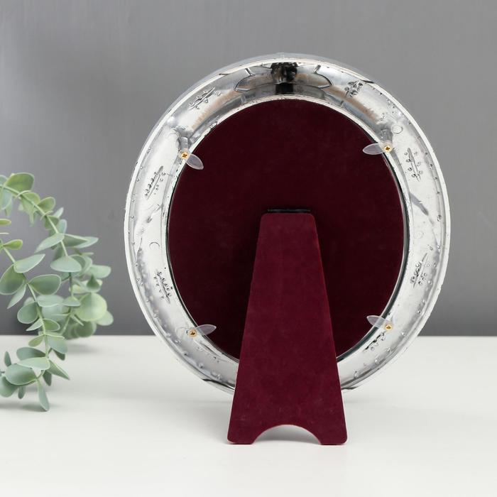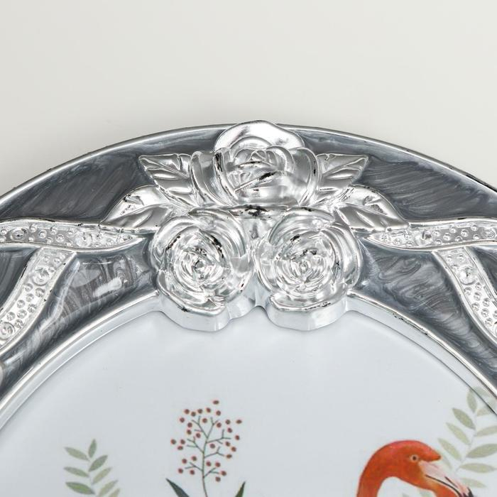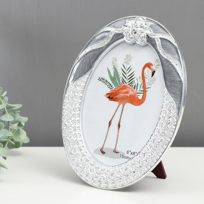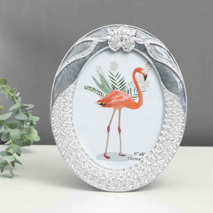Фоторамка пластик 15х20 см "Овал с серебристыми розами" серая 23х18х1,5 см