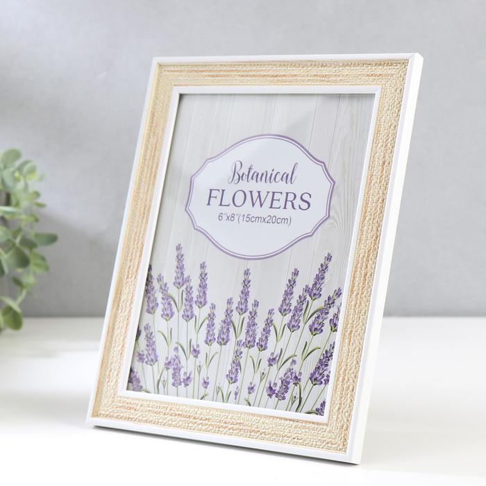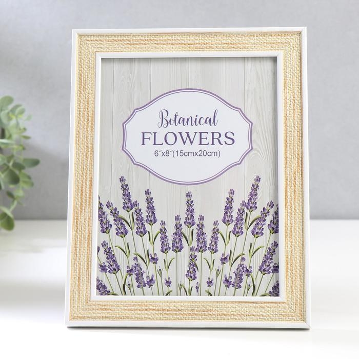 Фоторамка пластик 15х20 см "Плетение" жёлтый беж с белой обводкой 23,5х18,5 см