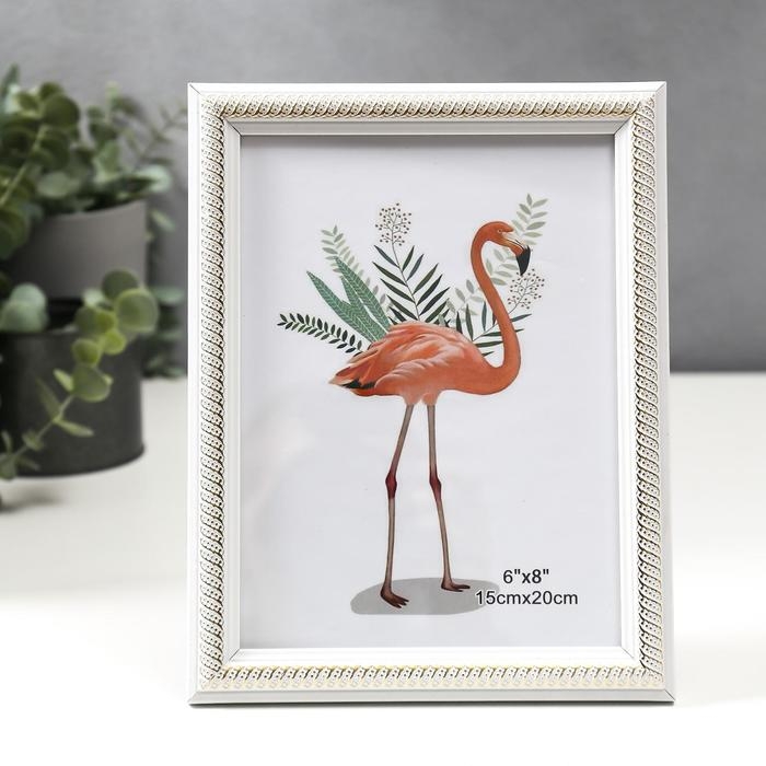 Фоторамка пластик 15х20 см "Золотая спираль на белом" 23х18 см