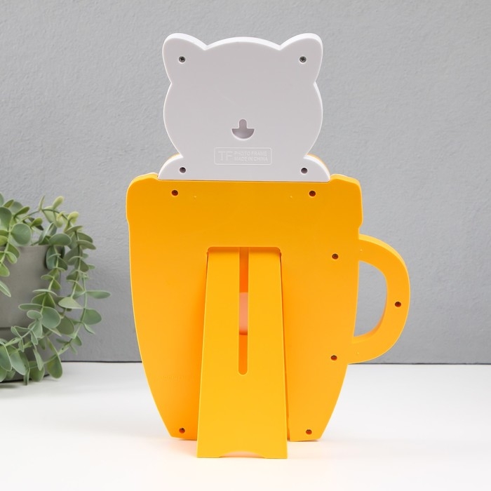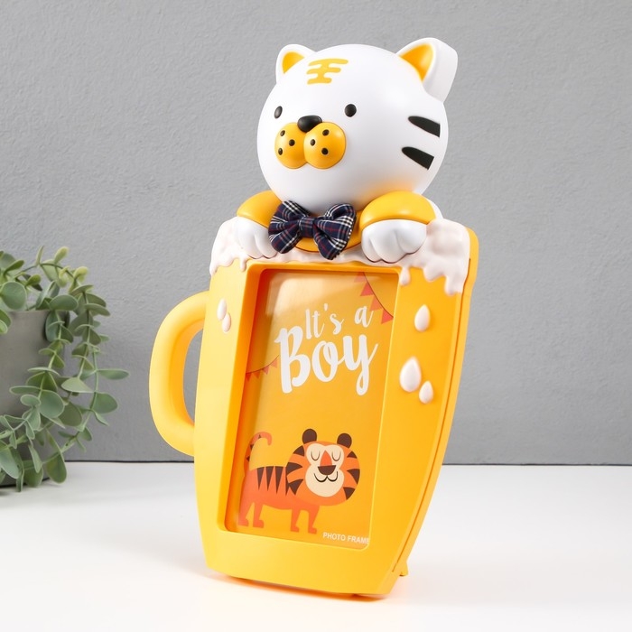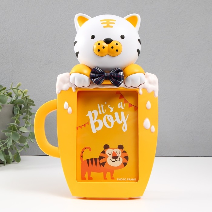 Фоторамка пластик 16х11 см "Тигренок в чашке" желтый 29,5х8х19,5 см