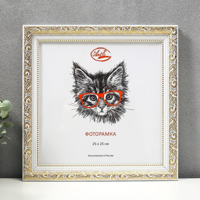 Фоторамка пластик 25х25 см, золото с белым