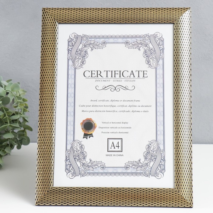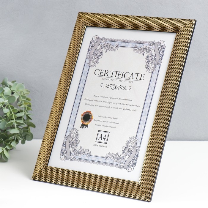 Фоторамка пластик формат А4 "Золотистая сеть" чёрные прожилки 34,2х25,5 см