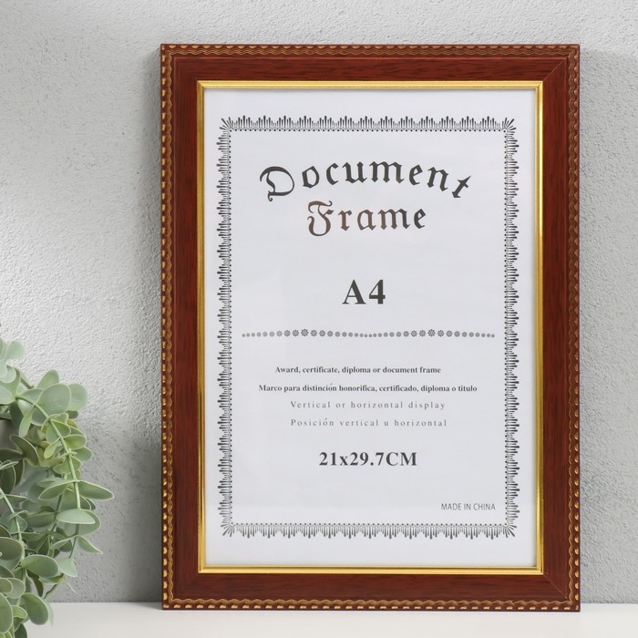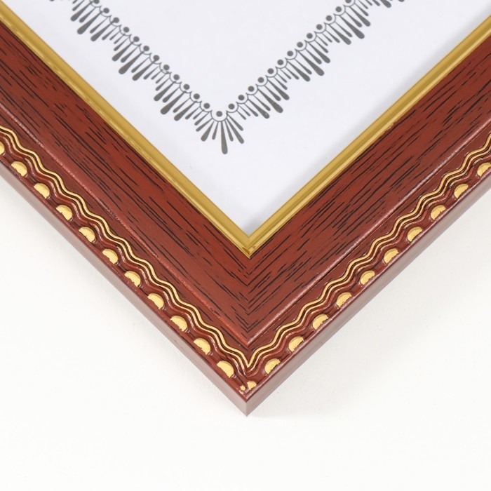 Фоторамка пластик формат А4 "Золотые волны и точки" темное дерево 24,8х33,5 см