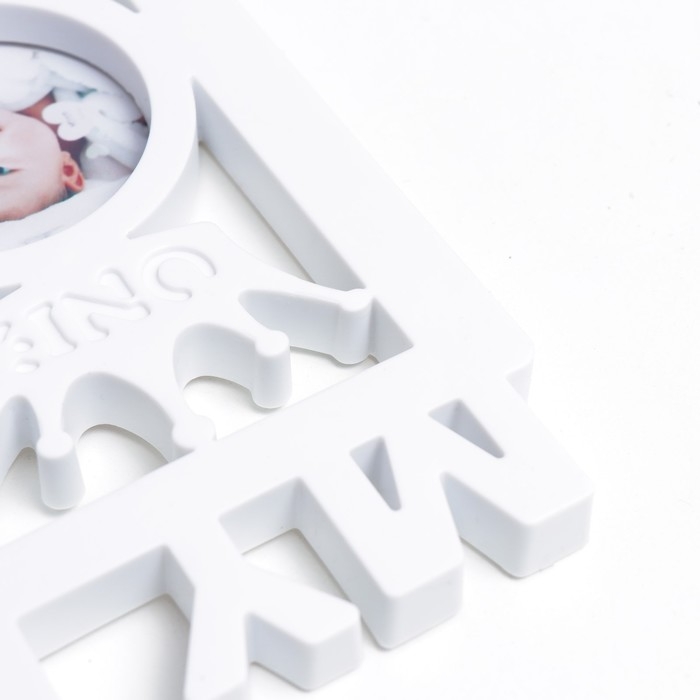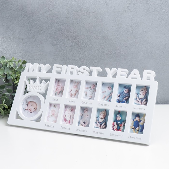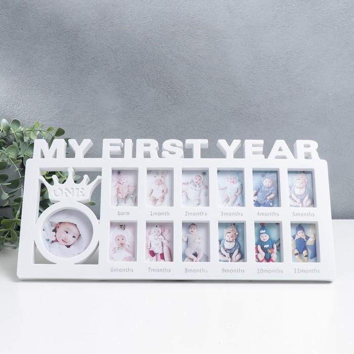 Фоторамка пластик на 13 фото 3,5х5,5, d=6,5 см "Мой первый год" белая 18,5х39х2 см