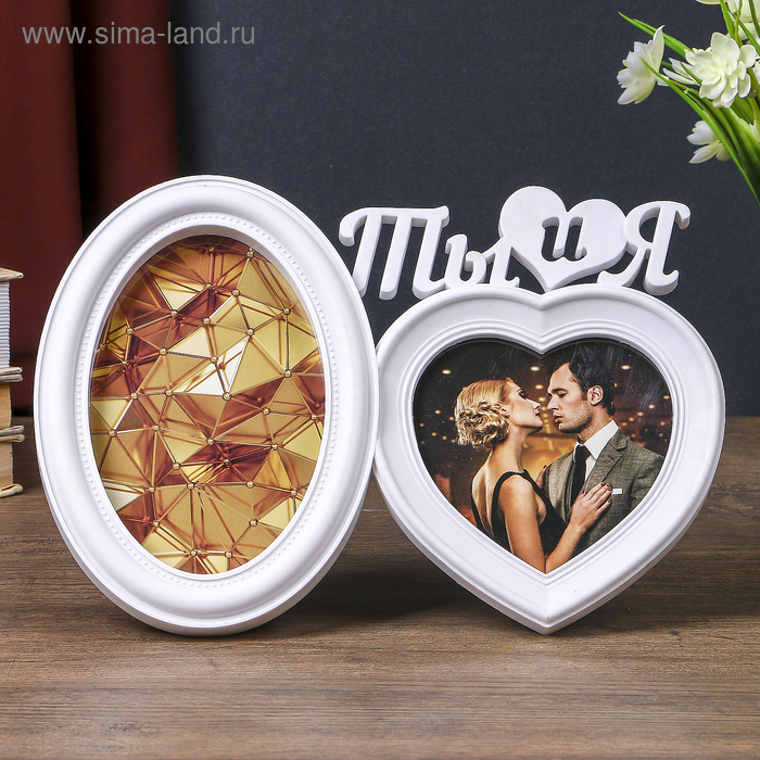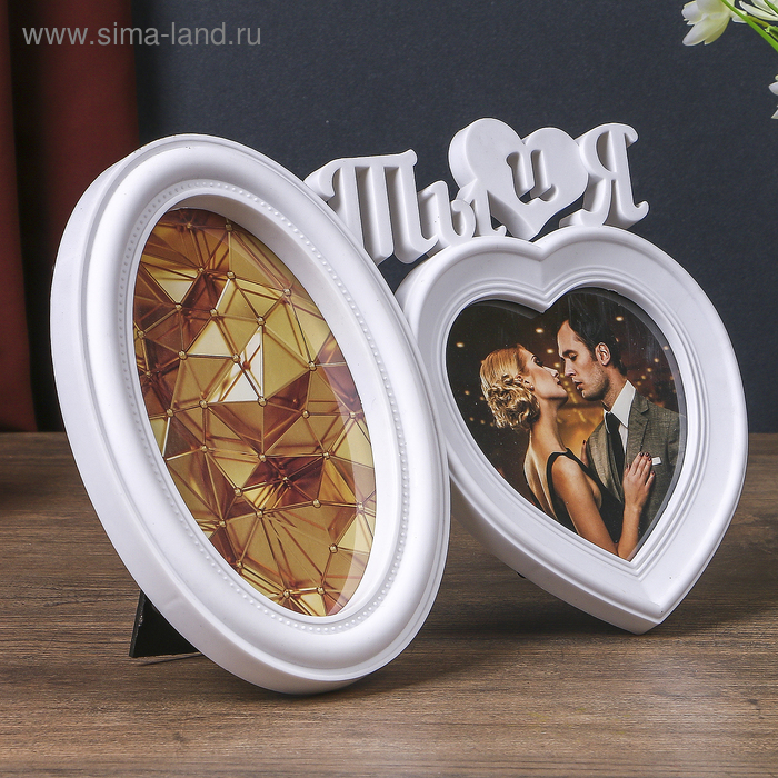 Фоторамка пластик на 2 фото 10х10, 10х15 см "Ты и я" белая 18,5х27х2 см