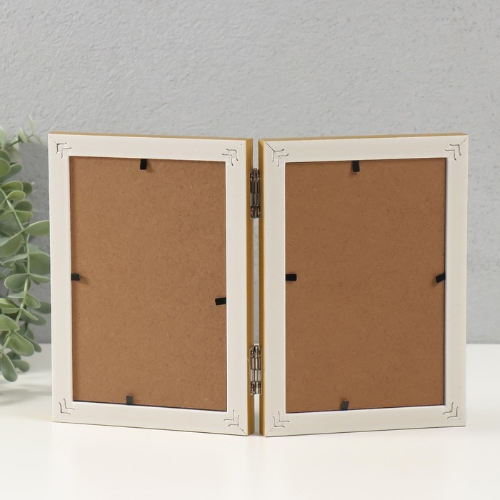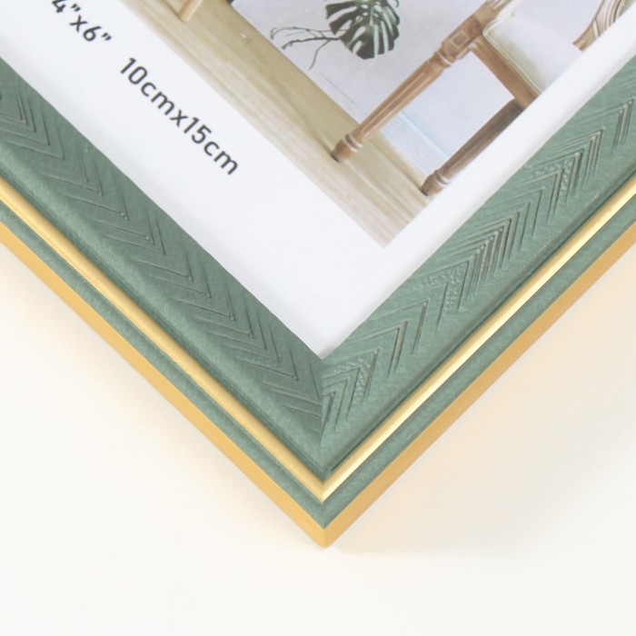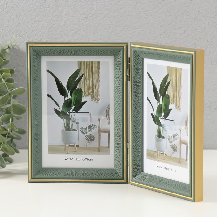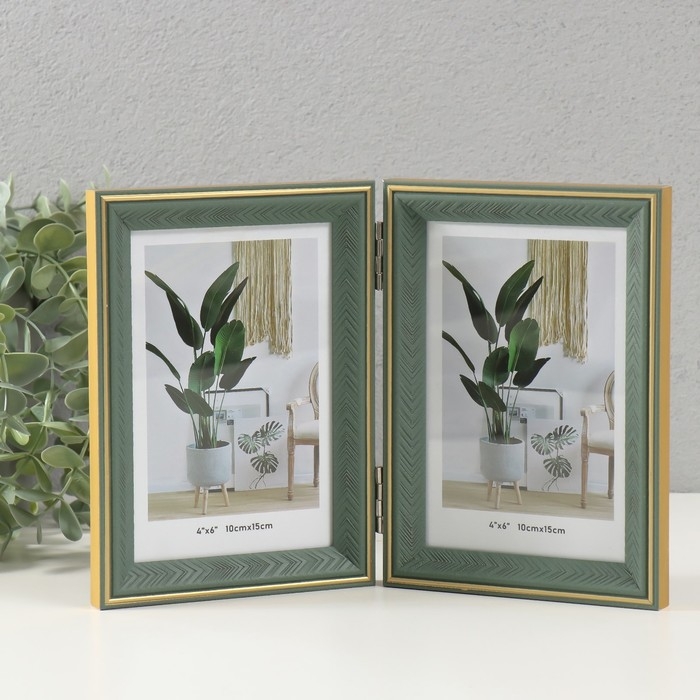 Фоторамка пластик на 2 фото 10х15 см "Галочки на зелёном" с золотой обводкой