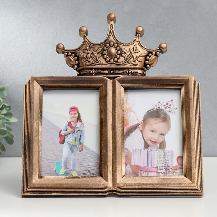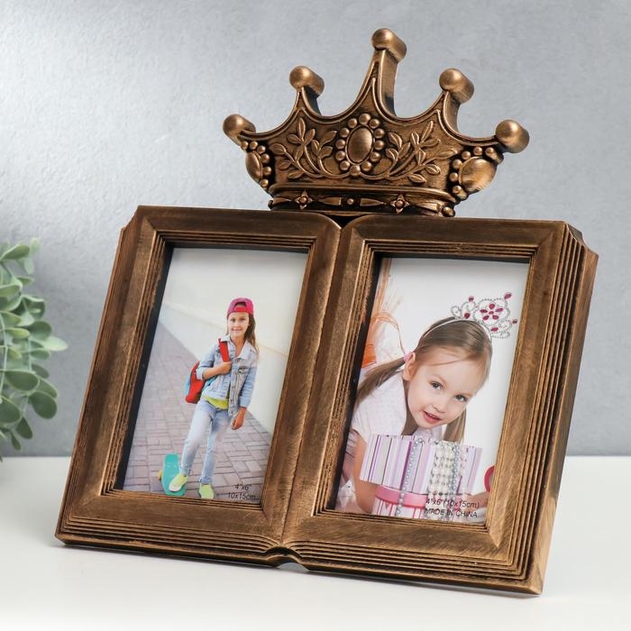 Фоторамка пластик на 2 фото 10х15 см "Корона" тёмное золото 30х28 см