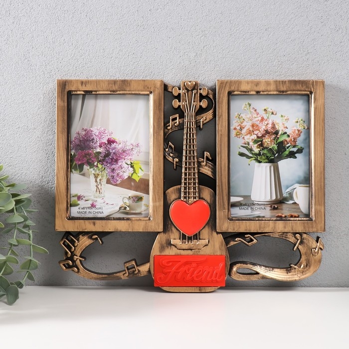 Фоторамка пластик на 2 фото 10х15 "Волшебство музыки" темное золото 30,5х2х23,5 см
