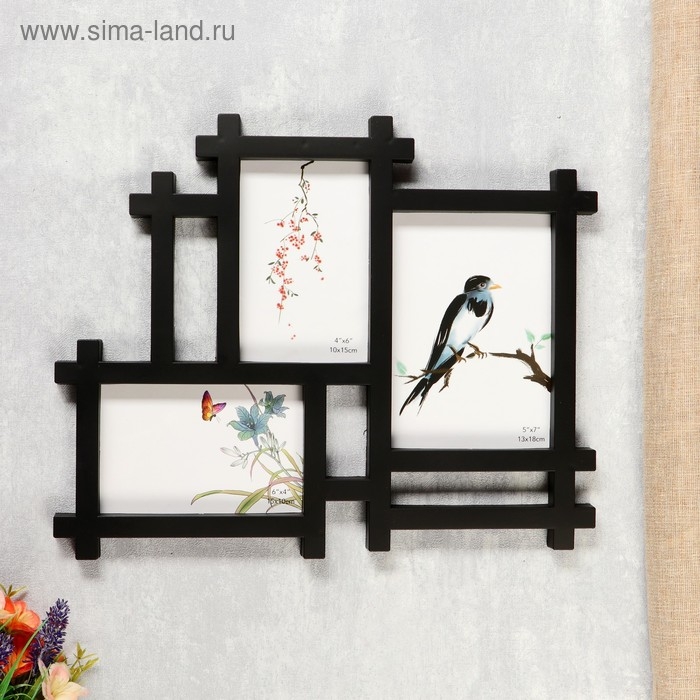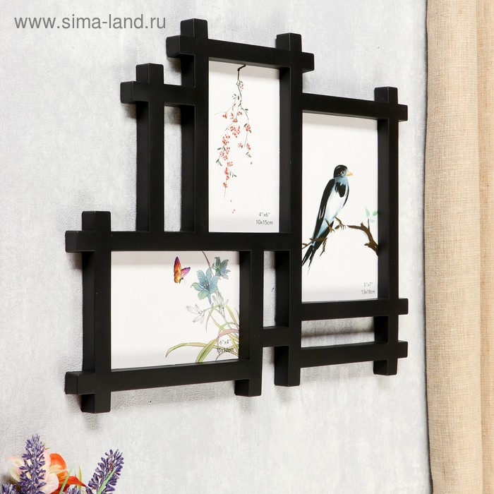 Фоторамка пластик на 3 фото 10х15, 13х18 см "Прямые линии" чёрная 30,5х38 см