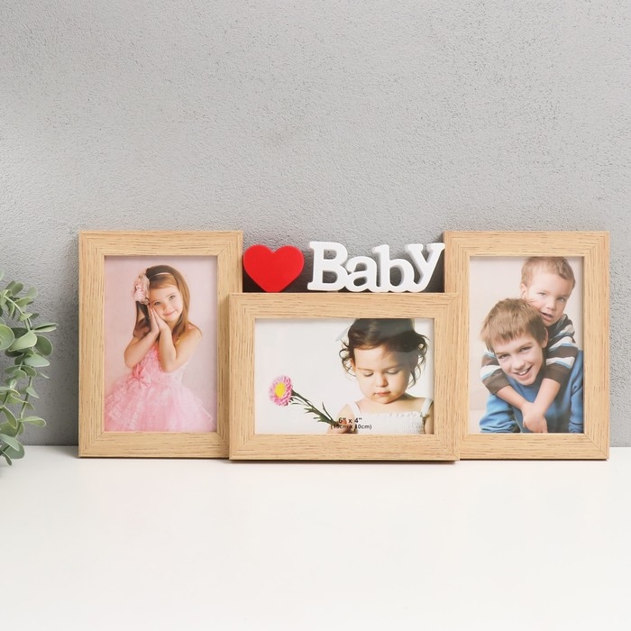 Фоторамка пластик на 3 фото 10х15 см "Мой любимый малыш" бук светлый 41х18 см