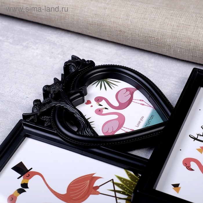 Фоторамка пластик на 3 фото 11х11, 13х18 см "Птицы на веточке" чёрная 29х29 см