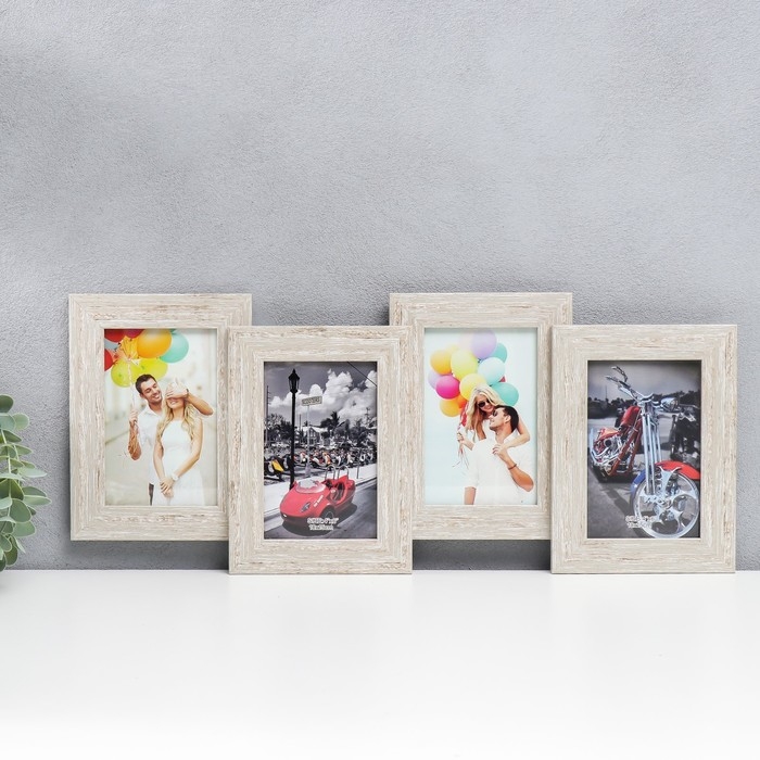Фоторамка пластик на 4 фото 10х15 см "Белый беж" 21,5х51,5х2 см