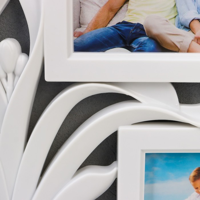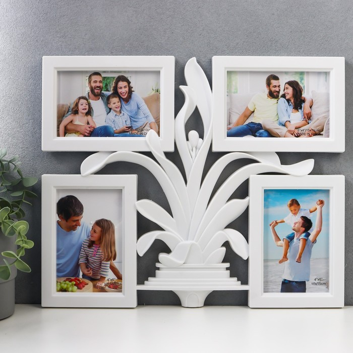 Фоторамка пластик на 4 фото 10х15 см "Цветущий панданус" белый 40х33,5 см