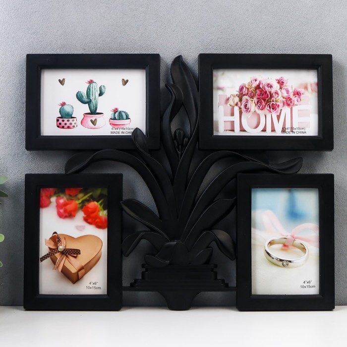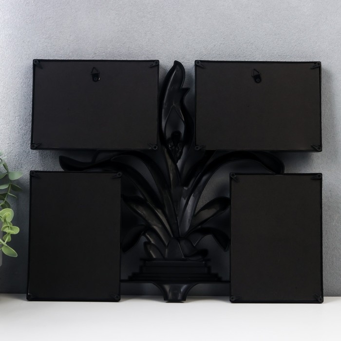 Фоторамка пластик на 4 фото 10х15 см "Цветущий панданус" чёрный 40х33,5 см