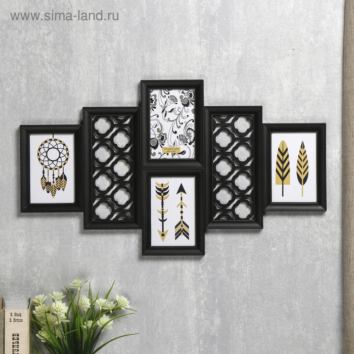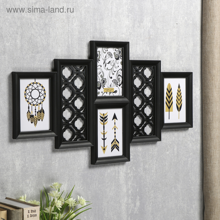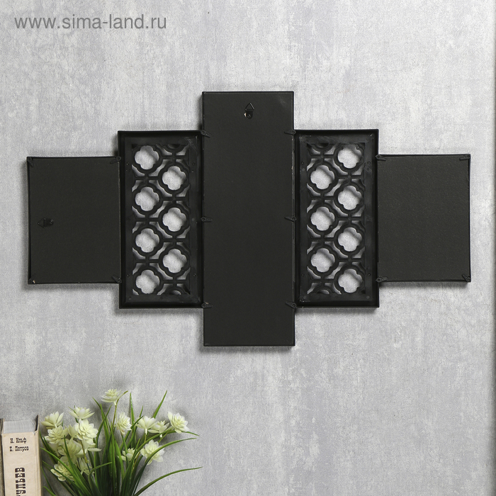 Фоторамка пластик на 4 фото 10х15 см "Узор" чёрная 35х62х2 см