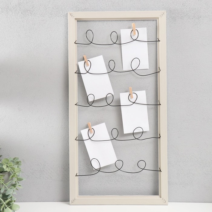 Фоторамка пластик на 4 фото "Веселые завитки" с прищепками, белый 60х30 см
