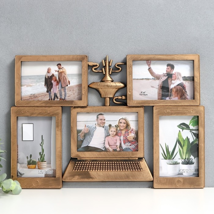 Фоторамка пластик на 5 фото 10х15 см "Ноутбук" тёмное золото 30,5х44,5 см