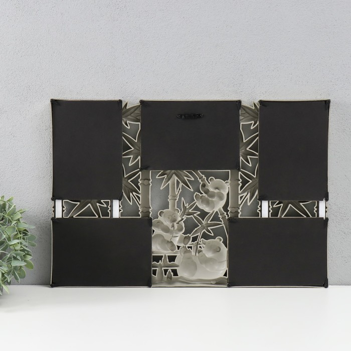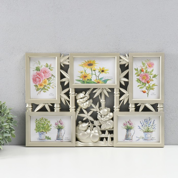Фоторамка пластик на 5 фото 10х15 см "Панды на бамбуке" бледное золото 32х47 см