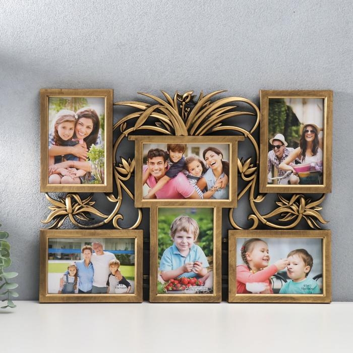 Фоторамка пластик на 6 фото 10х15 см "Африканская лилия" тёмное золото 36х49 см