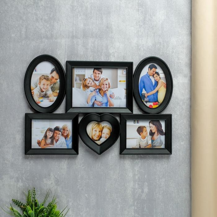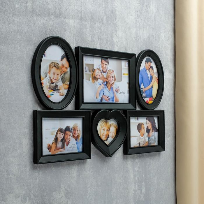 Фоторамка пластик на 6 фото "Коллаж" 44х30 см (10х15, 9х13, 13х18, 9х9 см)