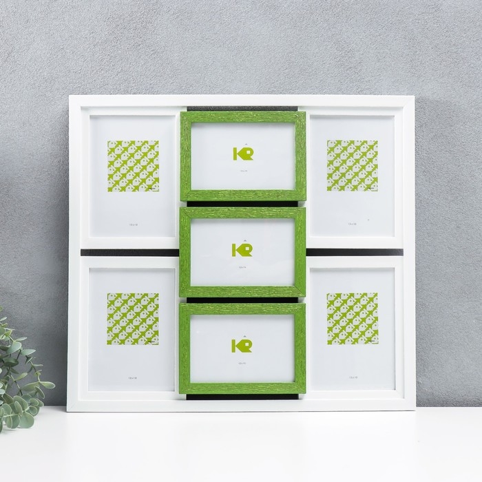 Фоторамка пластик на 7 фото "KRUZO", цв. белый с зелеными вставками