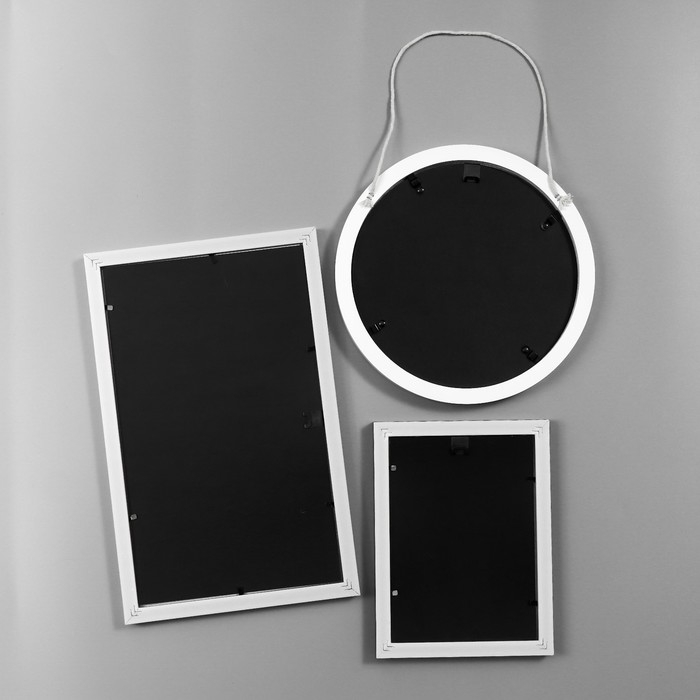 Фоторамка пластик на 7 фото+надпись+полочка "Family. Птицы" сине-белые набор 86х186 см