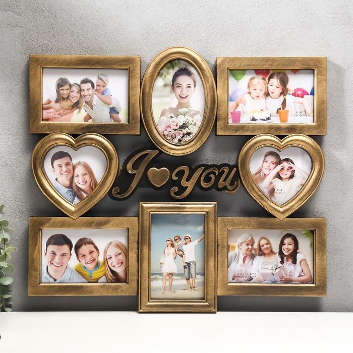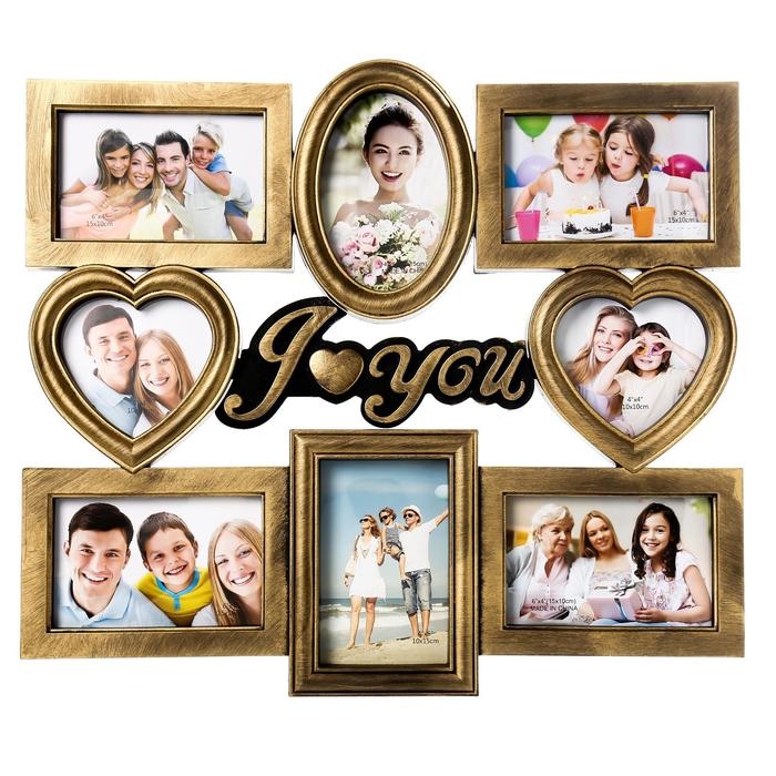 Фоторамка пластик на 8 фото 12х12, 10х15 см "Я люблю тебя" золото 43х43 см