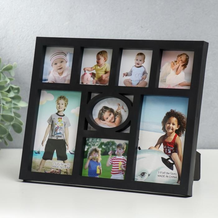 Фоторамка пластик на 8 фото 5х5, 5х7, 9х13 см "Лучшие моменты" чёрная 20х25 см