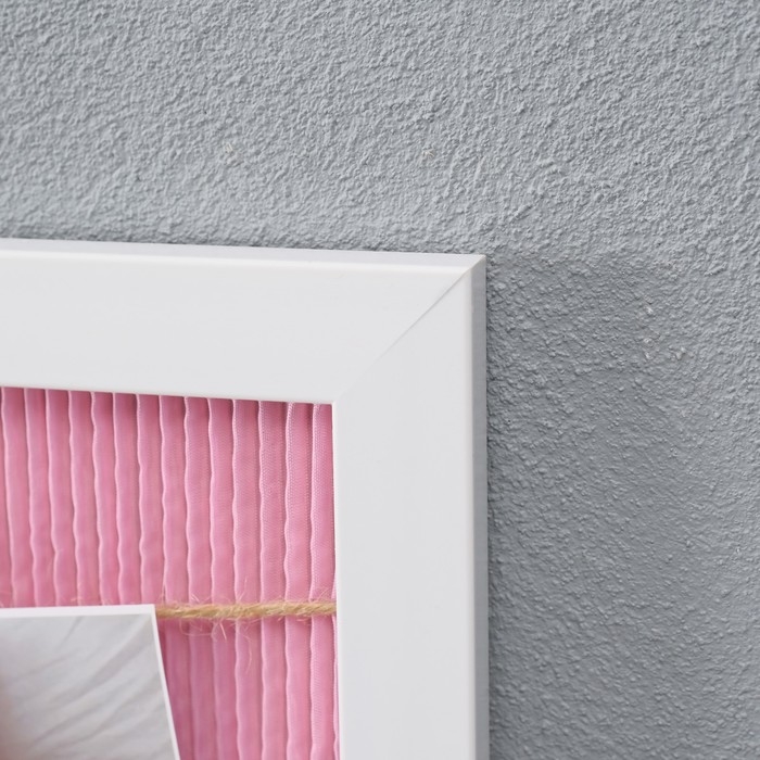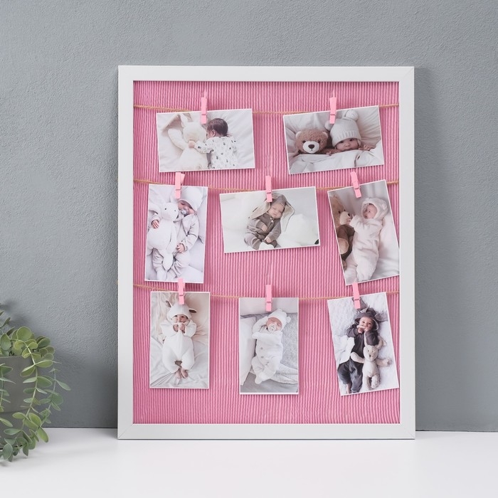 Фоторамка пластик на 8 фото 9х13 см "Розовая" с прищепками, белая 50х40х1,2 см
