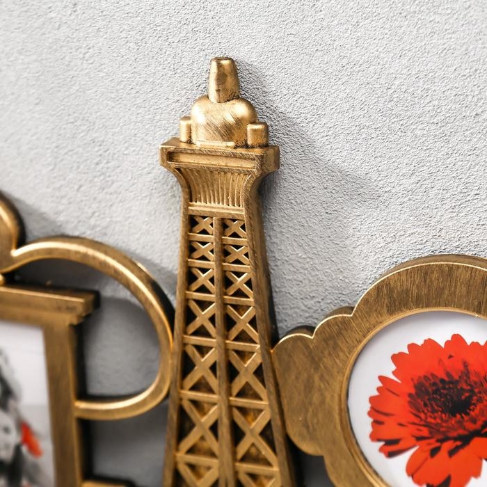 Фоторамка пластик на 8 фото10х10см,9х13см,10х15см,12х12см "Панорама Парижа" золото41,5х63см
