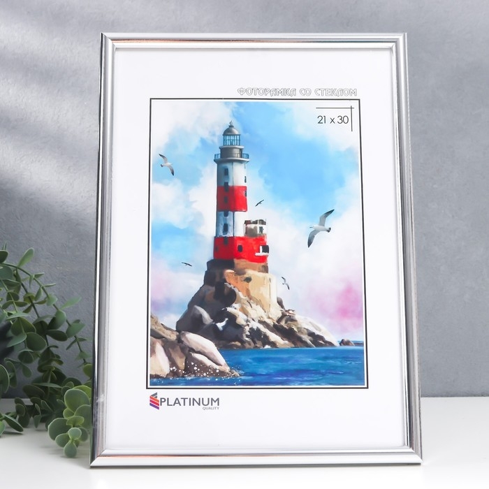 Фоторамка пластик "Палитра" 21х30 см, серебро, с ножкой