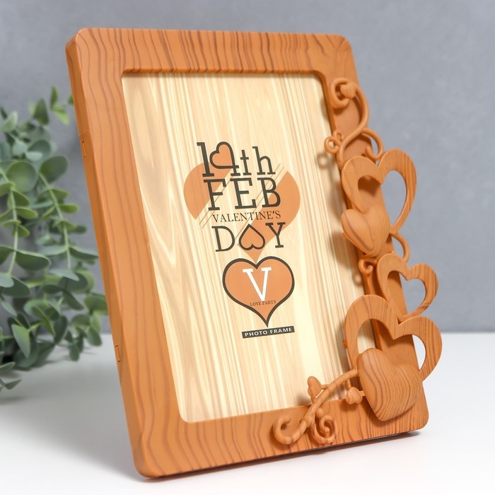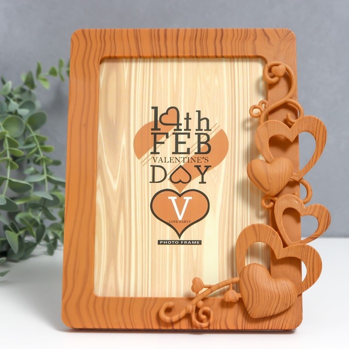 Фоторамка пластик под дерево 12х17 см "Сердечки" 17,7х21 см