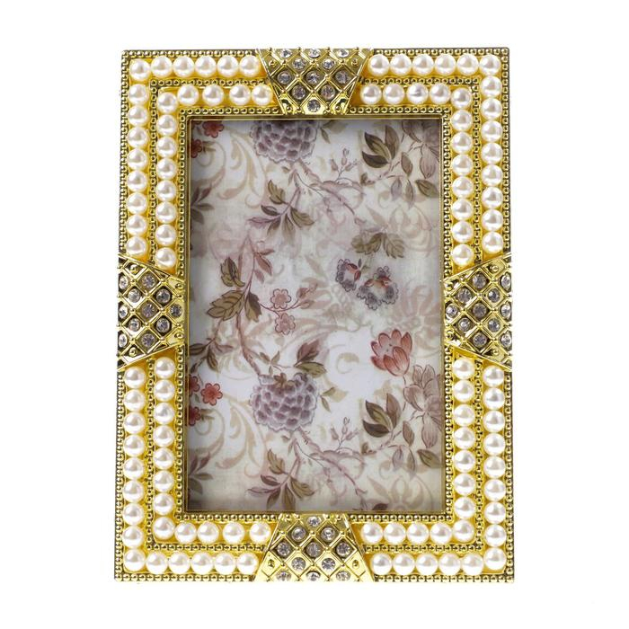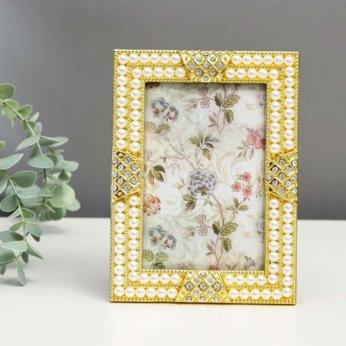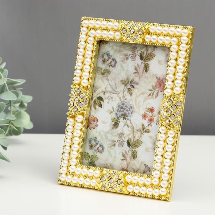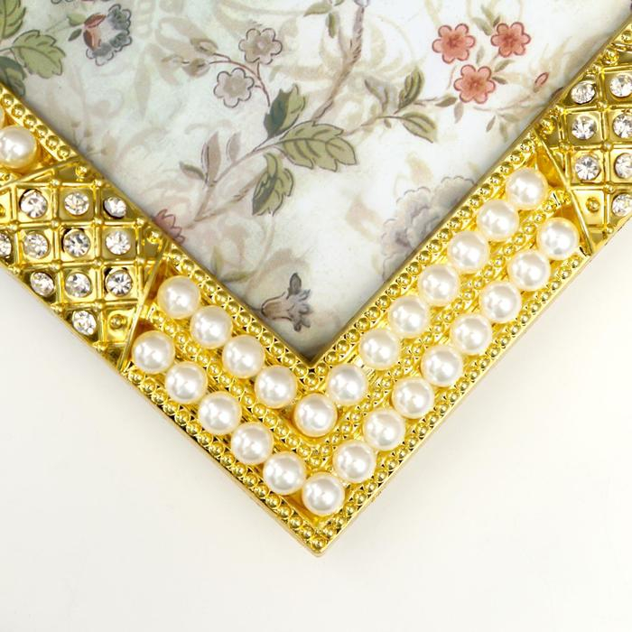 Фоторамка пластик под металл 10х15 см "Жемчуг и стразы" золото 18,8х13,8 см