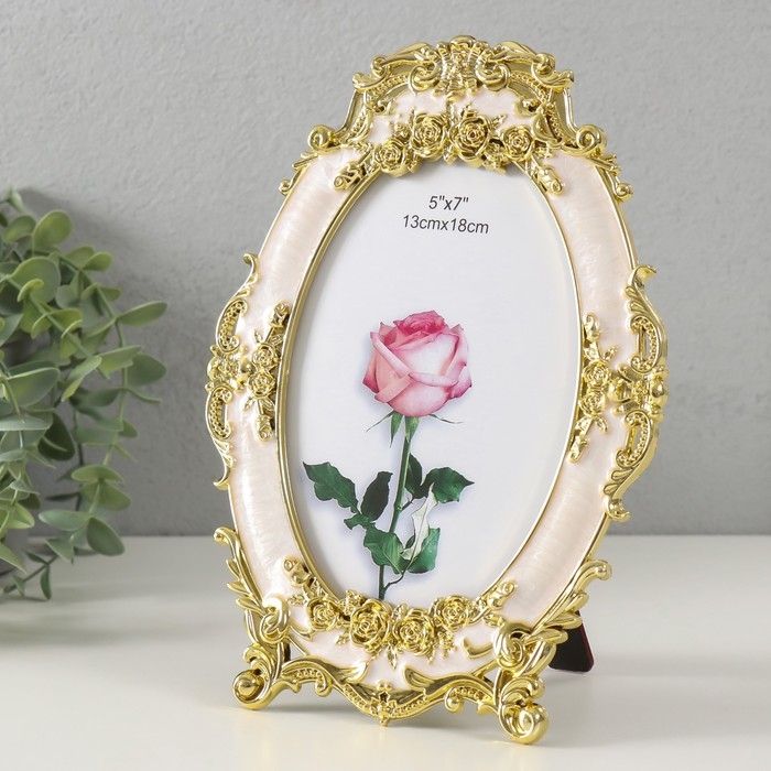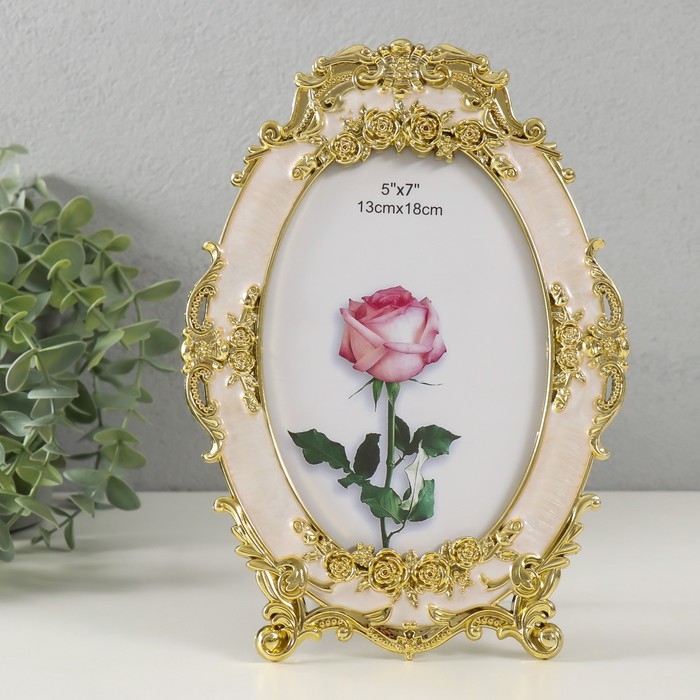 Фоторамка пластик под металл 13х18 см "Нежные розы" золото и перламутр 1х16,8х23,3 см