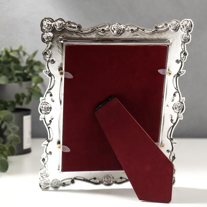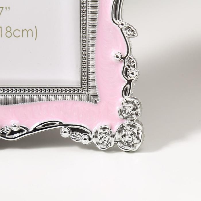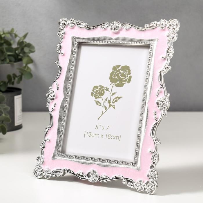 Фоторамка пластик под металл 13х18 см "Розы и эмаль" розовая и голубая 24х18,5 см, МИКС
