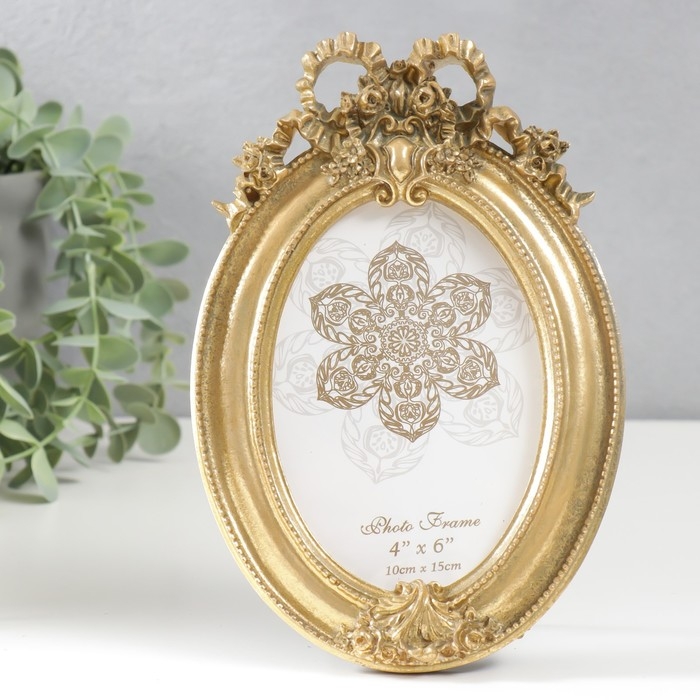 Фоторамка полистоун 10х15 см "Бант и медальон" состаренное золото 21х14 см