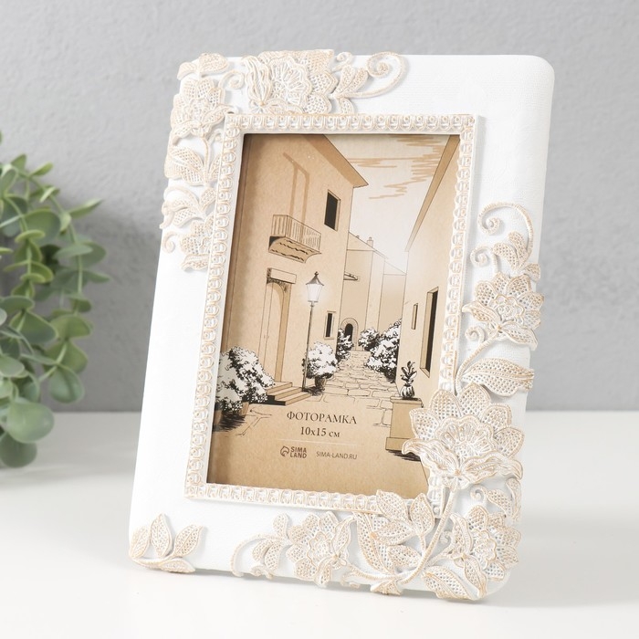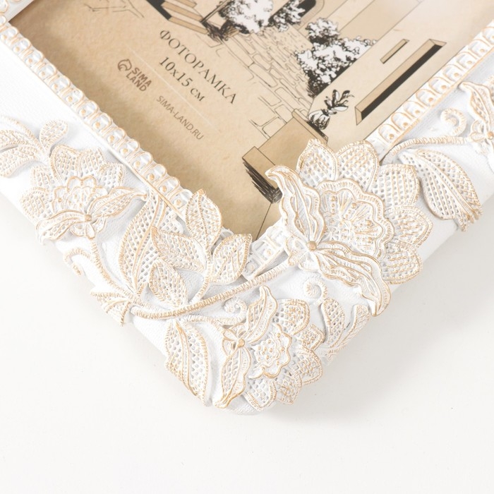 Фоторамка полистоун 10х15 см "Цветение. Кружево" белая с золотой патиной 17х1,5х21,5 см