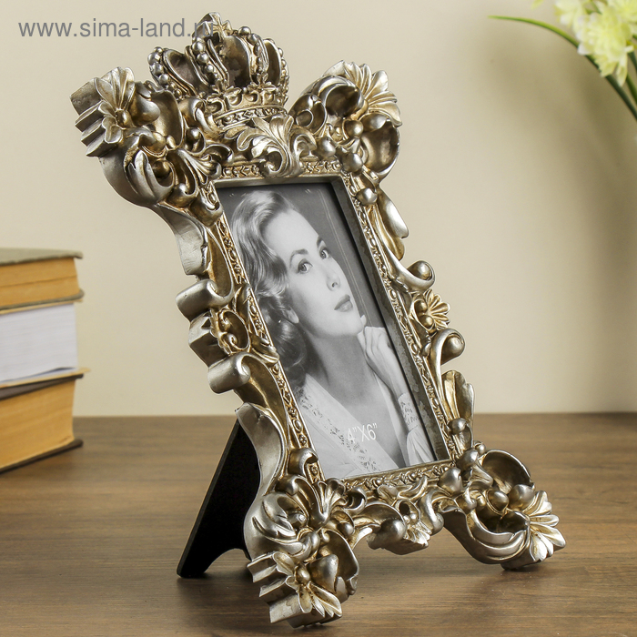 Фоторамка полистоун 10х15 см "Империя" состаренное серебро 28,5х21 см