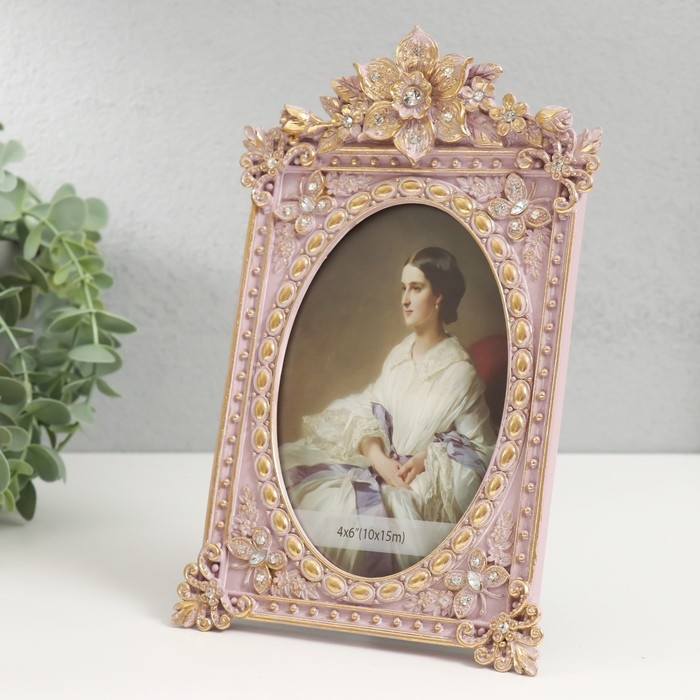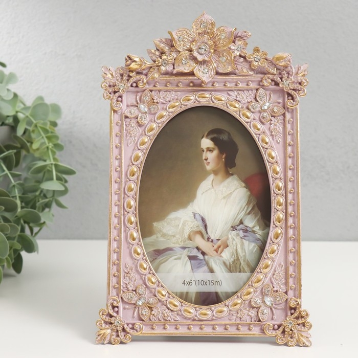 Фоторамка полистоун 10х15 см "Королевские цветы" розовая 22,5х14,5х3 см