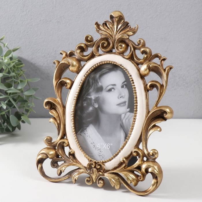 Фоторамка полистоун 10х15 см "Мюнхен" белая с золотом 25,5х18,5 см