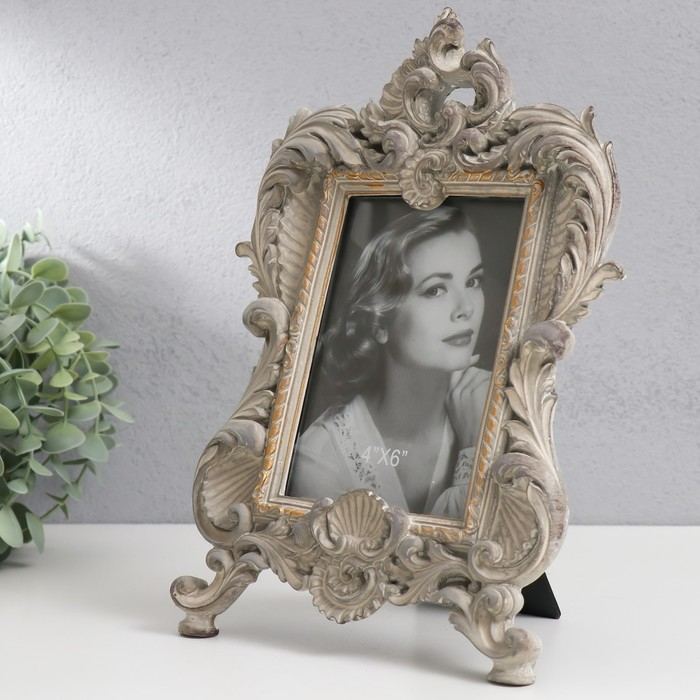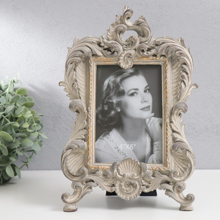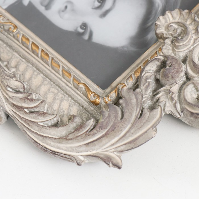 Фоторамка полистоун 10х15 см "Пышные листья" серебристая с золотом 28х18 см