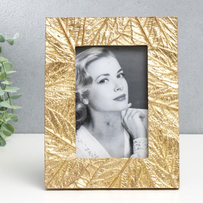 Фоторамка полистоун 10х15 см "Скелетированные листья" золото 21х16,5 см