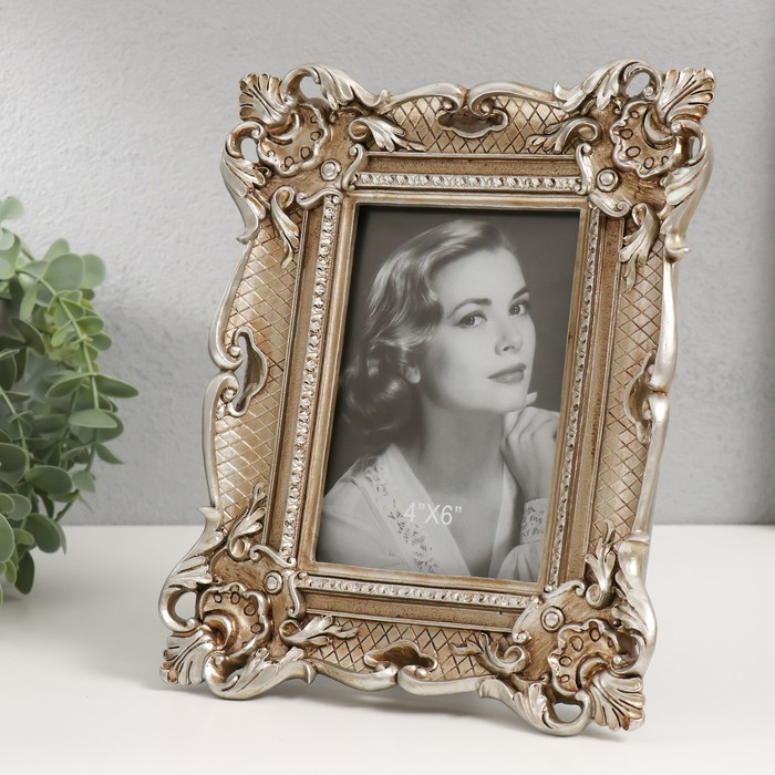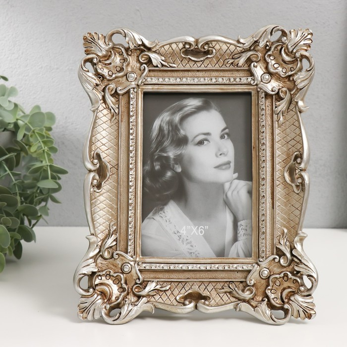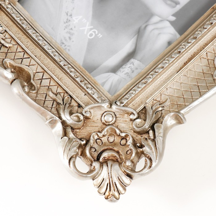Фоторамка полистоун 10х15 см "Узорная с растительными уголками" состаренное серебро 24х19 см 53837
