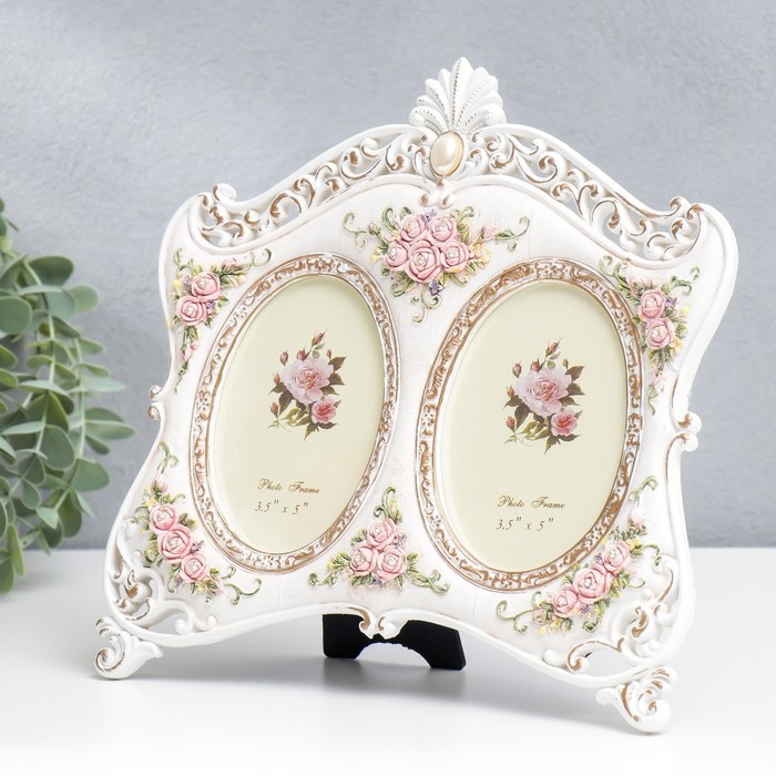 Фоторамка полистоун на 2 фото 10х15 см "Розарий" стразы 23х24,5 см
