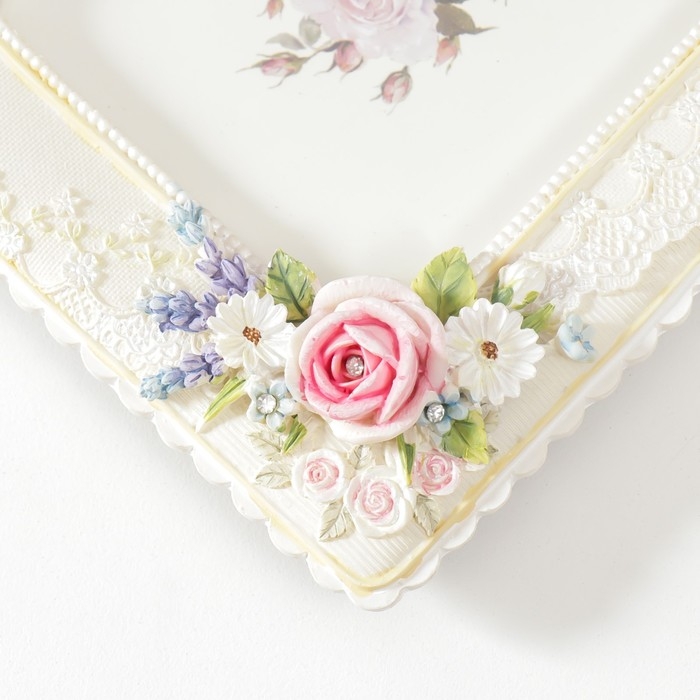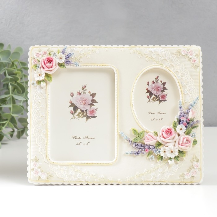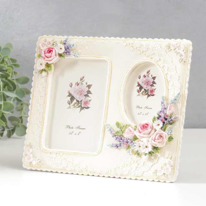 Фоторамка полистоун на 2 фото 6х9, 9х13 см "Кружево и букет с розами" стразы 17,5х21,5 см