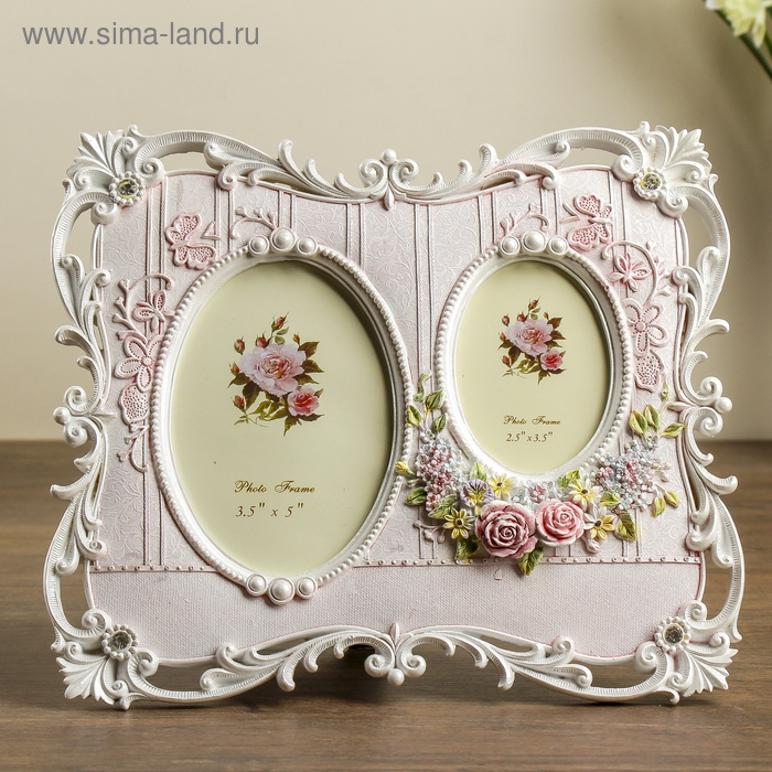 Фоторамка полистоун на 2 фото 6х9, 9х13 см "Тюильри" стразы 20х24 см