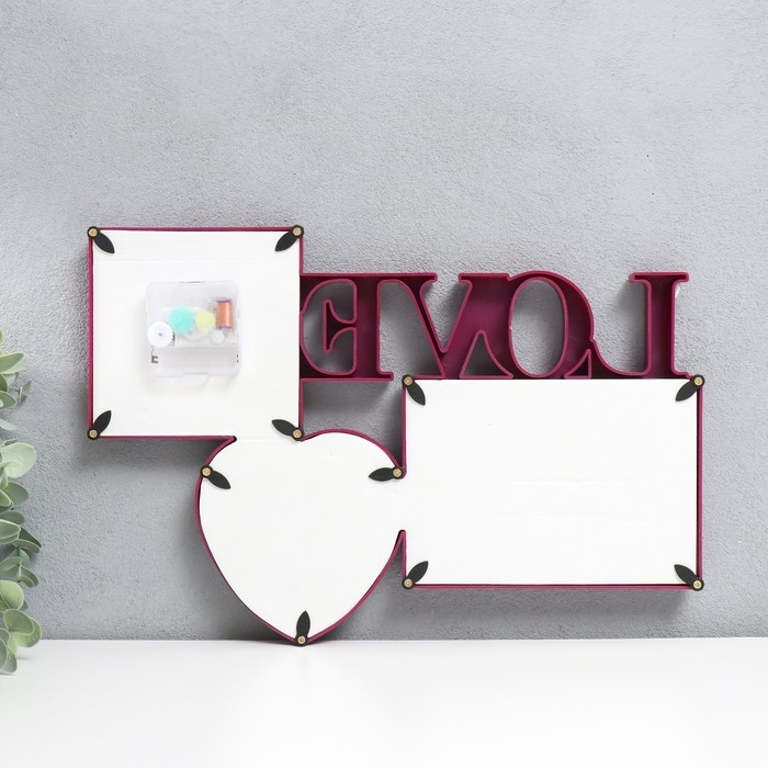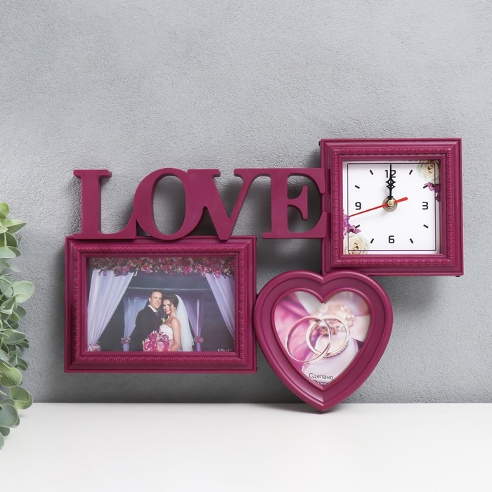 Фоторамка с часами "Любовь" 2 фото, бордовый