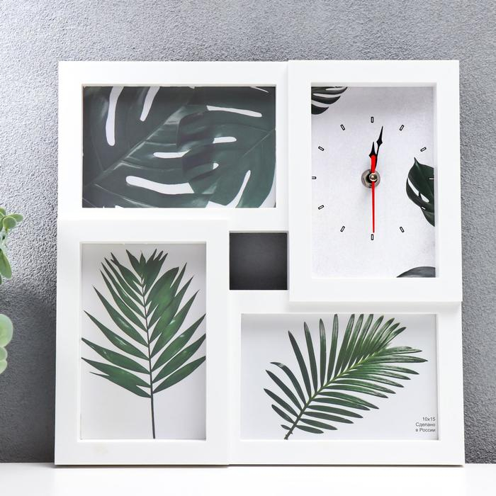 Фоторамка с часами "Прелесть" 3 фото, белый
