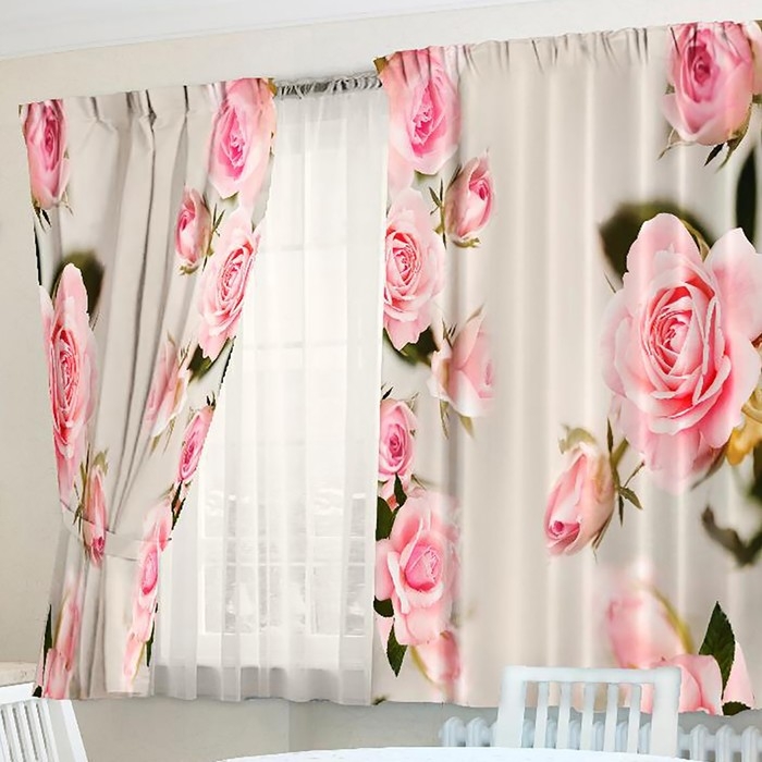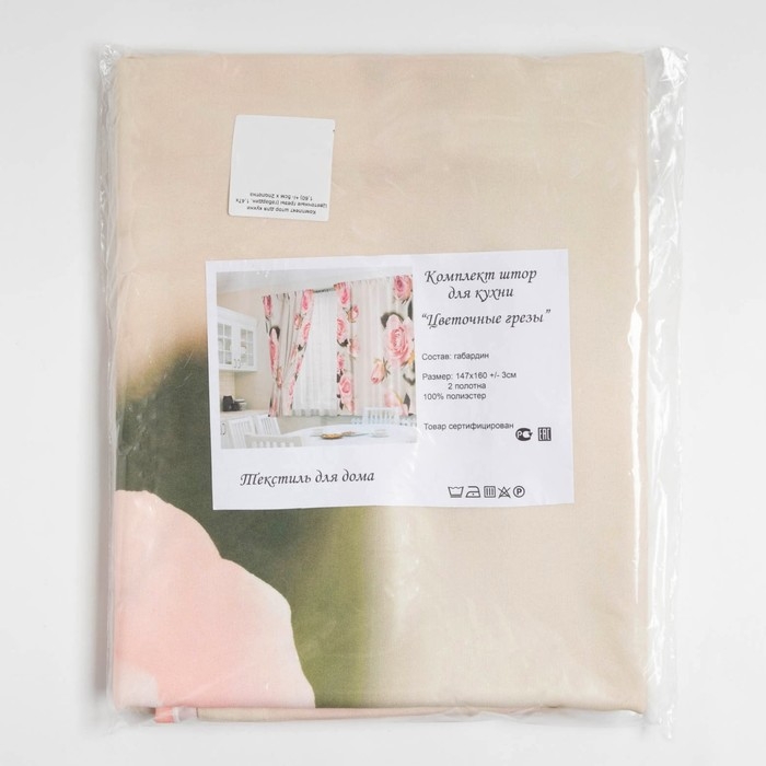 Фотошторы для кухни Цветочные грезы 145х160см-2шт, габардин, пэ 100%, 145г/м2