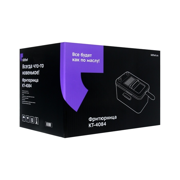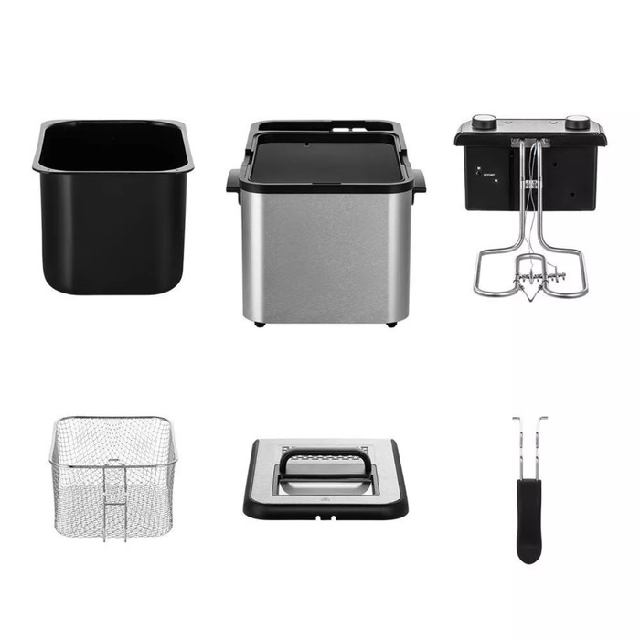 Фритюрница Kitfort КТ-4084, 3270 Вт, чаша 7.6 л, корзина 2.4 л, серебристо-чёрная